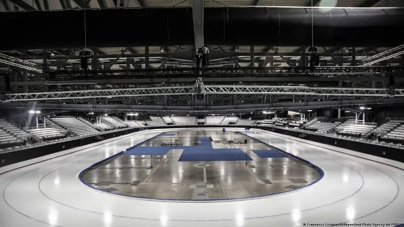 Estadio de patinaje de velocidad de Milán - La segunda pista de hockey sobre hielo se encuentra en el recinto ferial de Milán. Las competiciones de patinaje de velocidad también se celebran en otro pabellón de exposiciones reconvertido. El óvalo de hielo de 400 metros también es temporal y se desmantelará tras los Juegos Olímpicos.